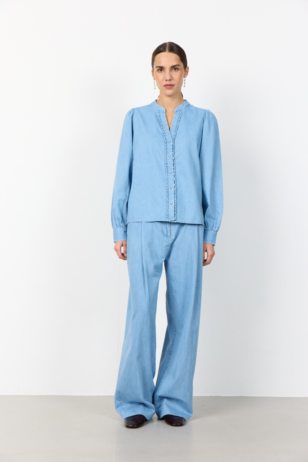 LR-PIETTA 2 är en enkel skjorta tillverkad av 100% bomull. Skjortan har en krage med volang, knappslå framtill, långa ärmar och en mjuk textur. Styla den elegant med skräddarsydda byxor eller en kjol för en raffinerad look.