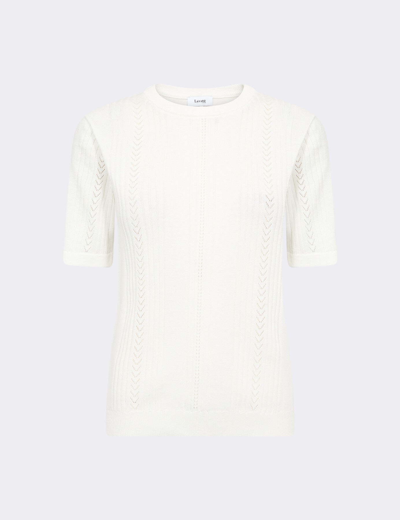 LR-PRIYA 1 är en klassisk t-shirt tillverkad av 100% ekologisk bomull. Denna eleganta design har korta ärmar och ett fint stickat mönster i hela tyget. Kombinera den med skräddarsydda byxor eller en pennkjol för en cool och sofistikerad look.